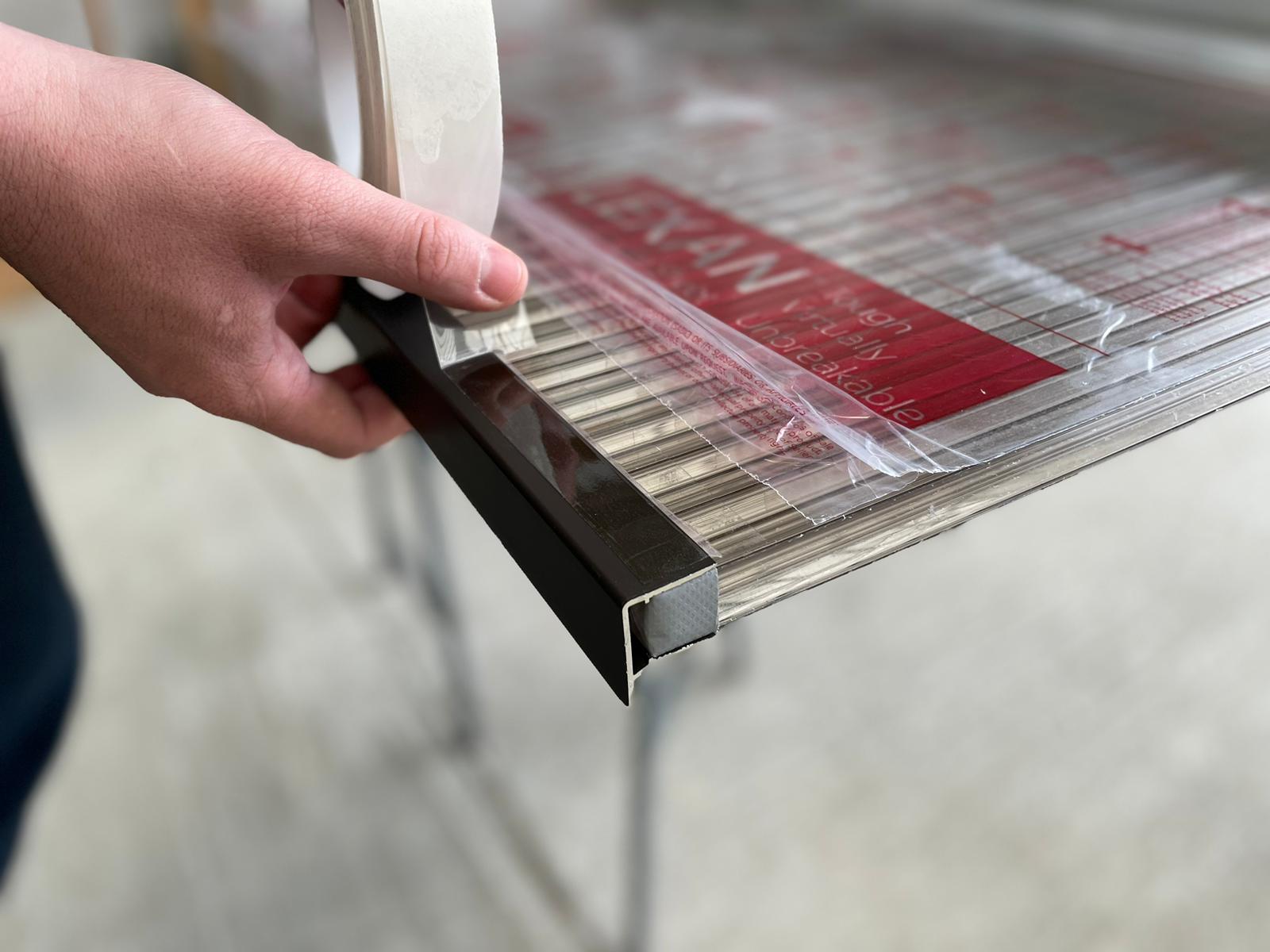 je určena k utěsnění spoje polykarbonátové desky a ukončovacího profilu. Průhledná, pružná polyuretanová pásová páska s vysokou přilnavostí odolná vůči UV záření a chemikáliím. Spolehlivá v širokém rozsahu teplot (-40°C až 90°C). V aplikaci je ideální náhradou za tradičně používaný silikonový tmel na odkapové hraně střechy z polykarbonátových desek.